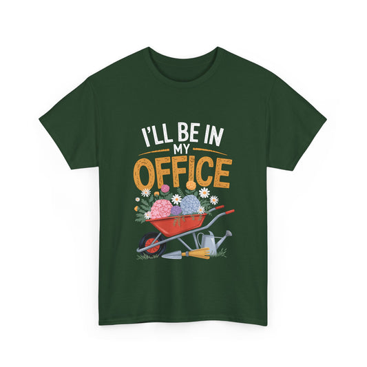 Unisex Heavy Cotton Tee – "I'll be in my office" Graphic T-Shirt for gardeners plant lovers, nature and gardening enthusiasts