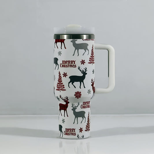 Christmas Stainless Steel Travel Mug with Handle, Lid, and Straw