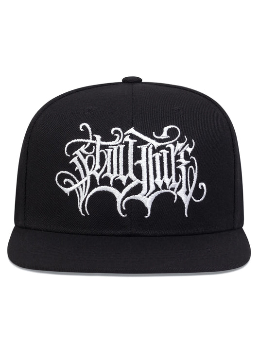 Unisex Embroidered Gothic Flat Brim Snapback Cap – Adjustable Casual Streetwear Baseball Hat