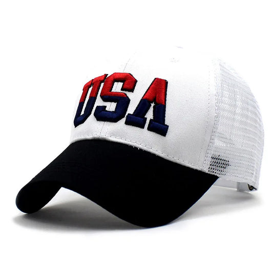 USA American Flag Embroidered Baseball Cap – Adjustable Cotton Hat for Men and Women, Solid and Mesh Styles for Summer