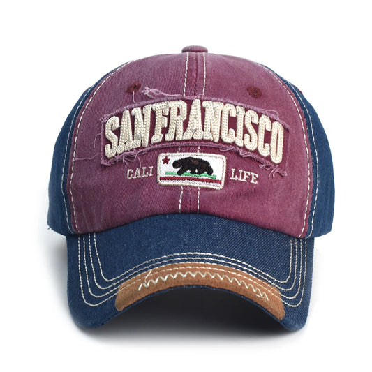 Vintage Patchwork Denim Baseball Cap – Unisex Retro Canvas Cotton Adjustable Hat with Embroidered Letters