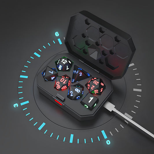 Set of Luminous and Rechargeable DND Dice and Charger Case