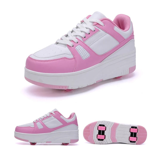 Kids 4-Wheel Roller Skating Shoes with Anti-Slip Rubber Sole